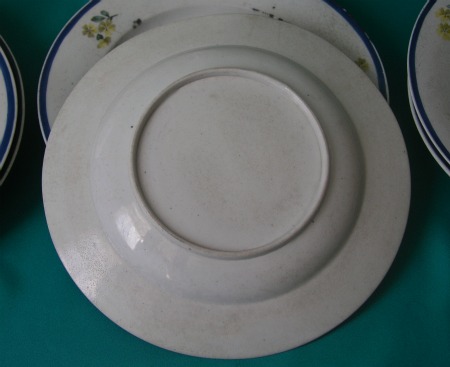 An 18th Century Porcelain Dessert Set (Possibly Doccia) c.1780-90, comprising 10 plates, hand-painted with roses/flowers in polychrome enamels. Dimensions: 22 cm. diam. Some plates marked with a scratched cross. Condition: manufacturing faults, some plates with hairlines, one with a chip on the foot rim. (This set has been shown to specialists from Bonhams, Christie's, "Antiques Road Show", dealers and collectors. Several attributions were suggested: Early 19th C French, 18th C Bristol, 19th C Staffordshire and Doccia). Stock Number: PN1161