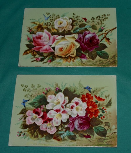 A pair of English Porcelain Plaques, second half of 19th century, bone china body, finely hand-painted with bouquets of roses and butterflys on pale green ground. Dimensions: 22.8 cm x 16.5 cm. Fine condition. Unmarked.
