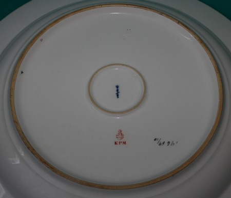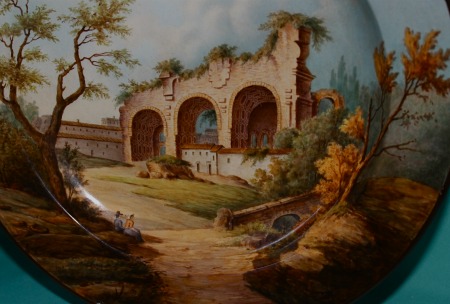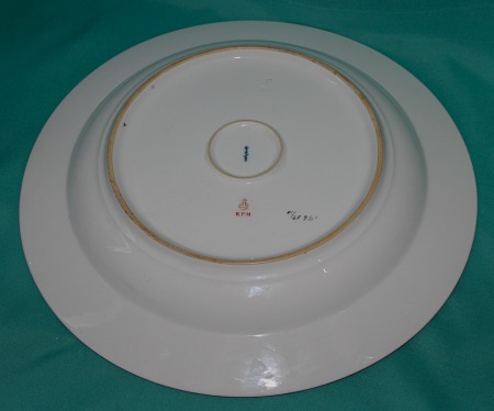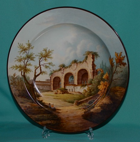 A 19th century KPM Berlin Porcelain Charger, superbly hand-painted rural scene depicting ruins, foliage and figures in the foreground and a majestic landscape in the background. Dimensions: 31 cm diam x 4.8 cm high. Printed, painted marks, impressed numbers. Excellent condition.