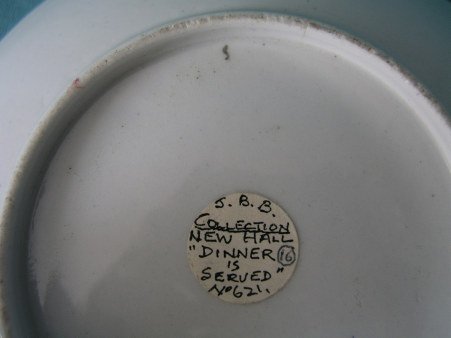 A New Hall hybrid hard-paste porcelain coffee can and saucer, decorated with the printed outline and painted "Dinner is served" Pattern 621, c.1795-1800. Dimensions: saucer 14cm diam, can 6cm. high. Workmen's mark in black. Condition: A stress line on the saucer. SOLD