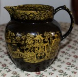 A Leeds-Swinton (Brameld) Yellow-printed Brown Stoneware Jug c.1790