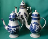 Three English Blue & White Pearlware Coffee pots c. 1790-1810