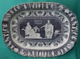 A Rare Minton Pearlware Meat Dish/Platter c.1810, transfer-printed in black with a version of "Greek" pattern, the border with masonic symbols. Dimensions: 28 cm x 37.5 cm. Condition: a tiny 4 cm hairline near the rim. Unmarked.