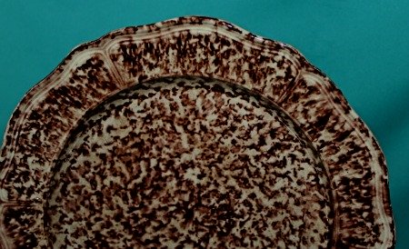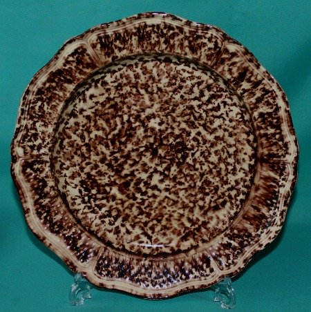 A fine English Whieldon Creamware Plate, circa 1760, with silver-shape moulded rim, decorated with tortoise-shell design in brown. Dimensions: 24.7 cm diam. Excellent Condition. Unmarked.